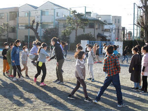 今日は、班ごとに校庭、体育館、教室で遊びました。