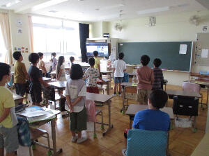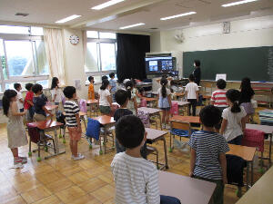 WBCに湧く子ども達。体育の授業で行った「キックベース」をお楽しみ会に取り入れたようです。「K」はキックベースの意味だったのですね。