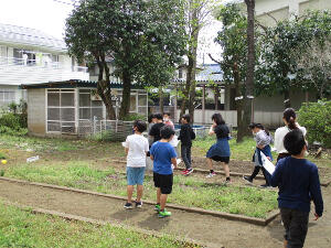 晴れの日が続き、1年生が育てているチューリップも少しずつ芽がでてきています。