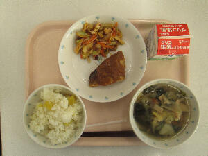 今日のグラタンに入っている緑の葉は、小松菜です。小松菜は、成長期のみなさんには欠かせない「カルシウム」と「鉄」がたくさん入っています。牛乳に負けないほど多いカルシウムは、骨や葉を丈夫にしてくれます。ほうれん草よりも多い鉄は、不足すると全身に血がまわらなくなり、倒れてしまうことがあります。
