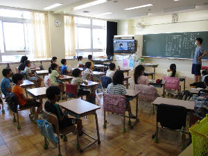 1〜5年生は、各教室から、6年生は、2クラス揃って視聴覚室で参加しました。
