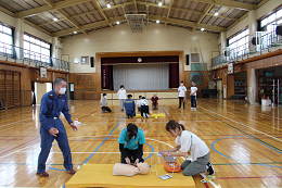 *先生方が救急救命講習を受けました。大切な命を守るための訓練です。