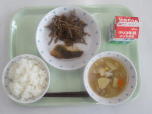 今日の給食は、「豆乳味噌汁」です。豆乳は、大豆を水に浸してすりつぶし、煮詰めたものを濾した液状のものです。豆乳と味噌が同じ大豆からできているからでしょうか、豆乳と味噌は、とても相性が良いです。豆乳を味噌汁に入れるとまろやかで優しい味になります。そして、不足しがちな豆・豆製品を摂取することができます。今日の「豆乳味噌汁」が気に入ったら、ぜひ、お家でも試してみてください。