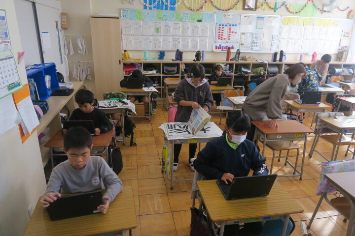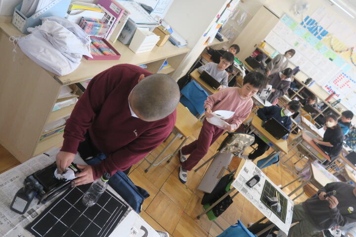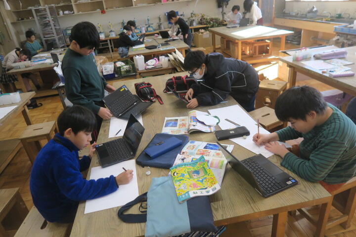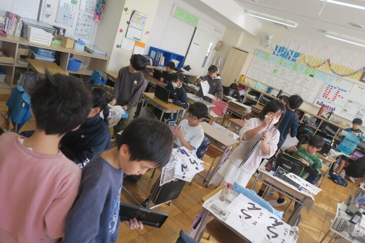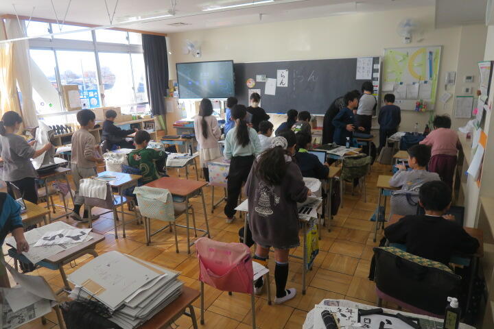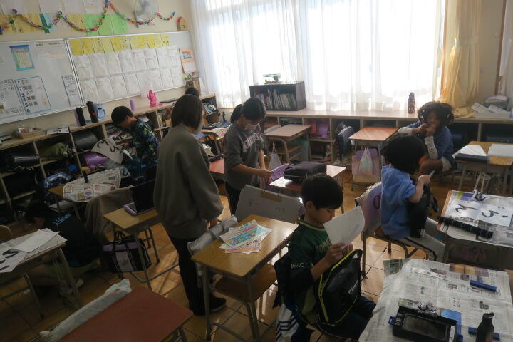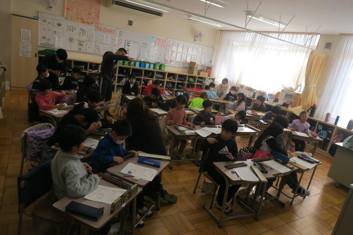 終盤でほとんどの子が書き終わり、片付けをしていました。