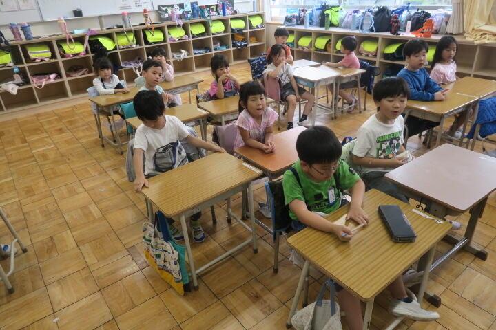子どもたちに「はきものをそろえる」の詩を紹介しました。