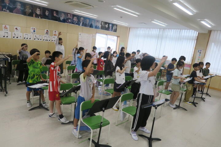 グループごとに演奏をする前に、学期ごとの練習をしているところでした。