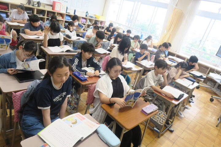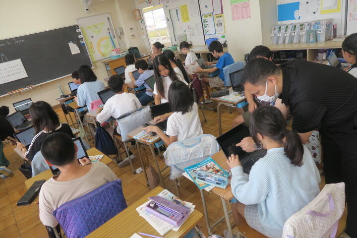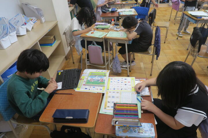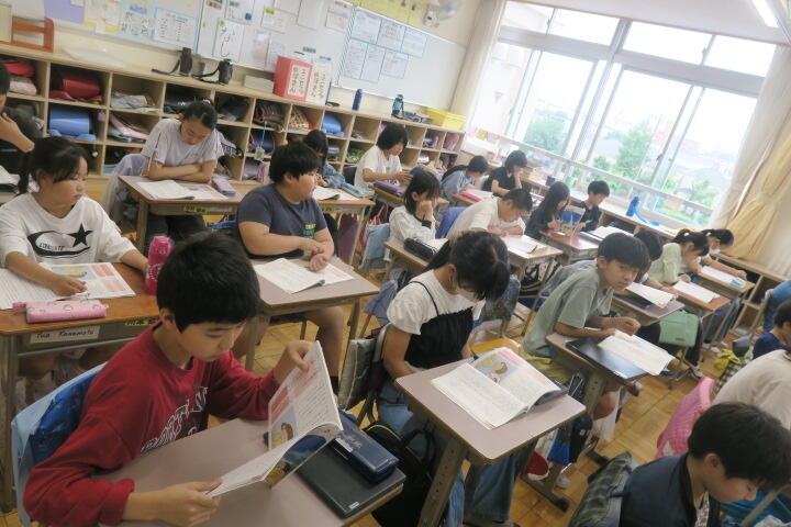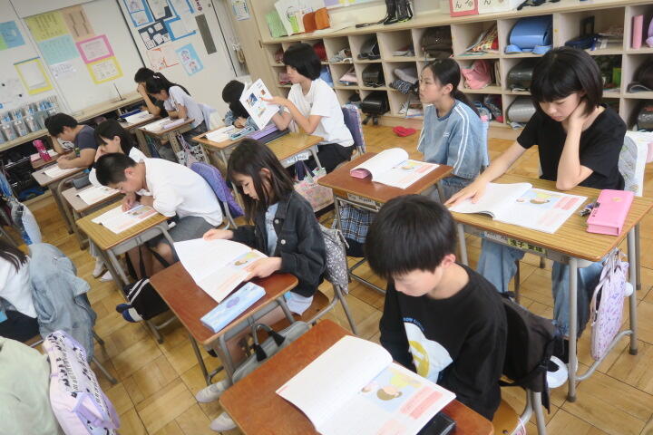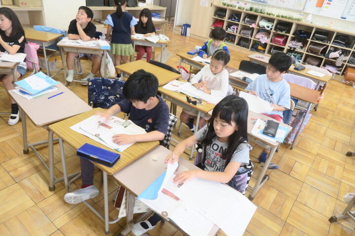 ワークシートを使いながら、文章の読み取りを行っていました。
