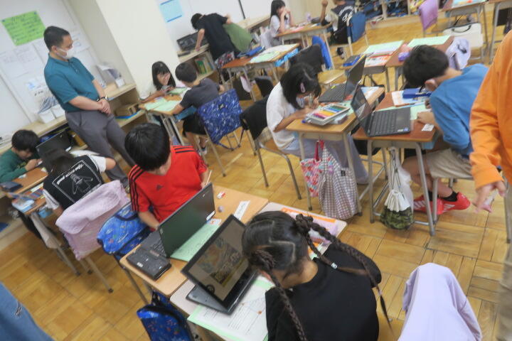 教科書から、和語とは何かなどを見付け、ノートに書いていました。