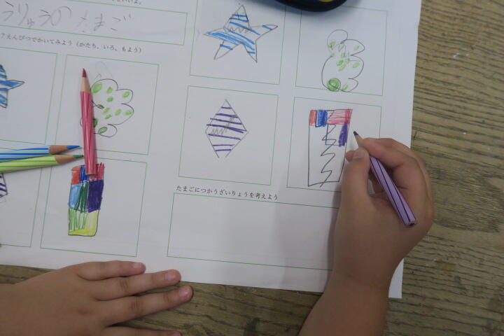 生活科で作った作品をグループごとに何に見えるか発表し合っていました。