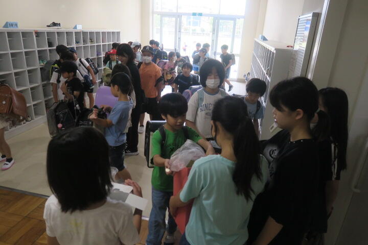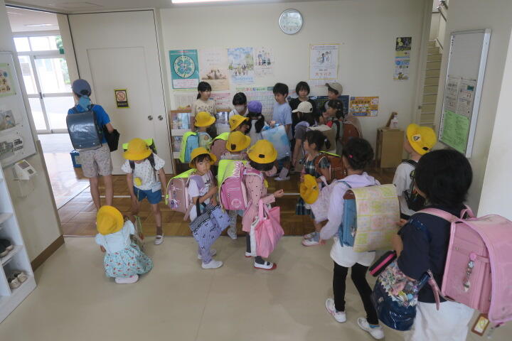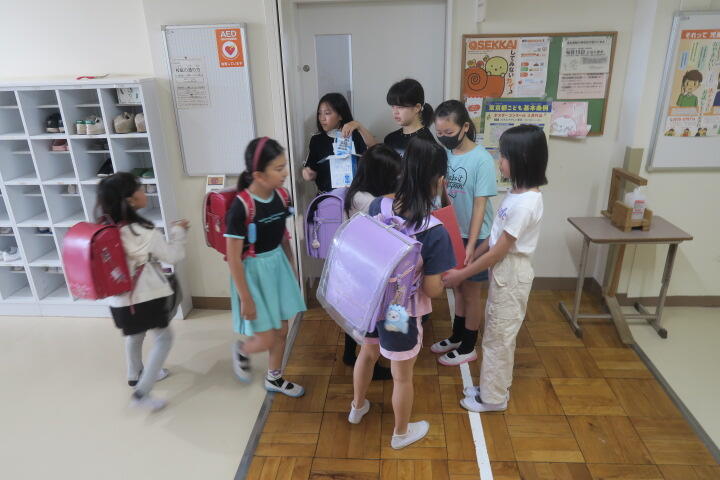 廊下や階段、校庭にいた児童は放送を聞き、自分で判断して