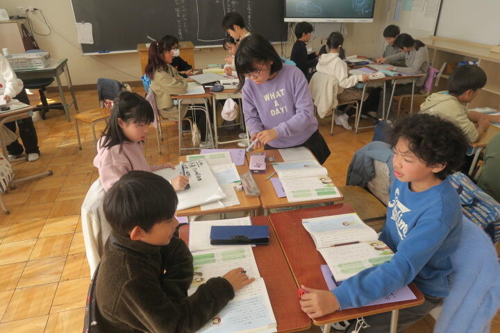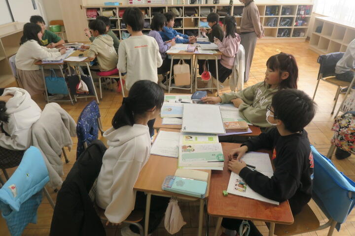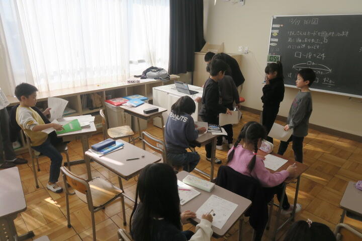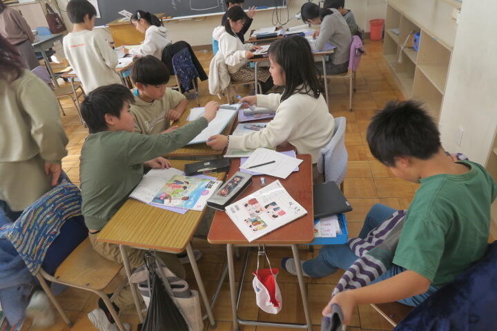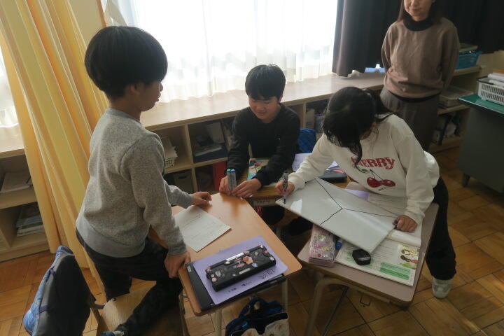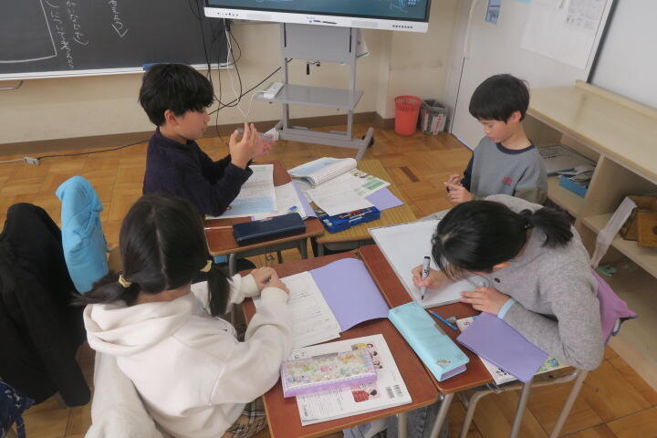話し合いをし、ホワイトボードに意見をまとめるところでした。