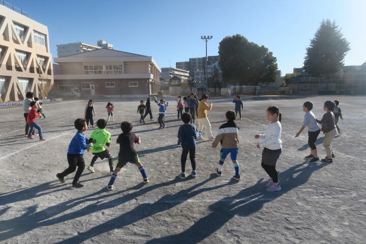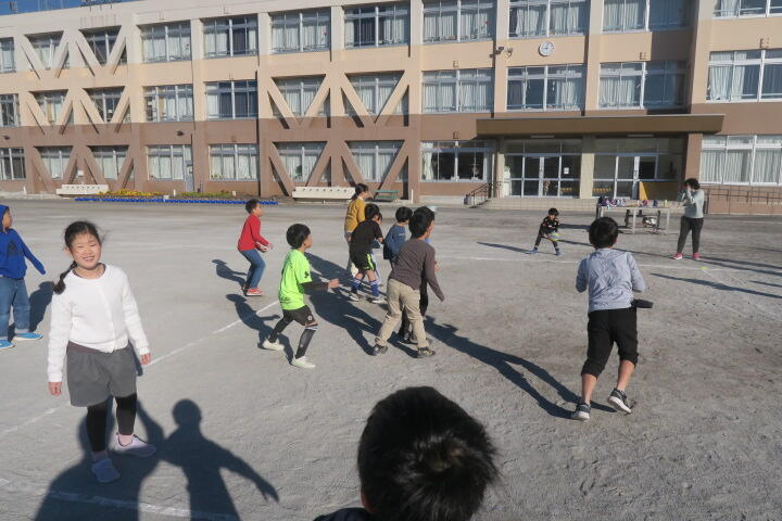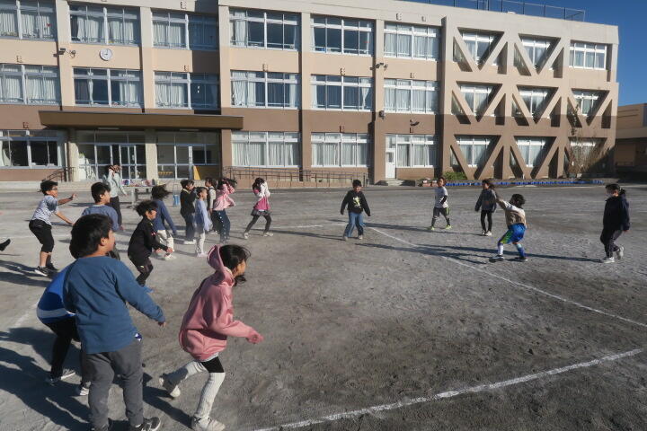 廊下や階段、校庭にいた児童は放送を聞き、自分で判断して