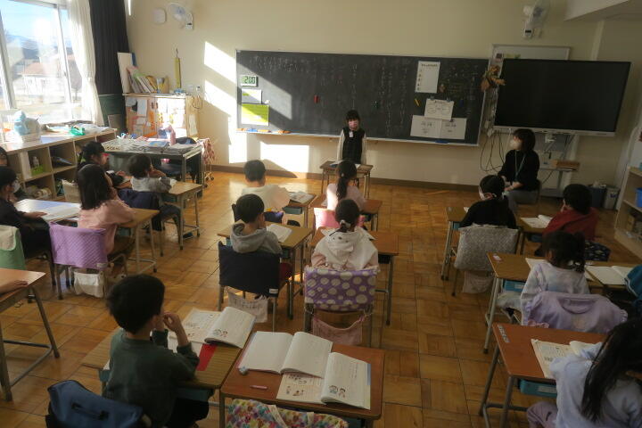 1年生は国語の教材にもなっている物語文「お手紙」を題材にした音楽物語です。