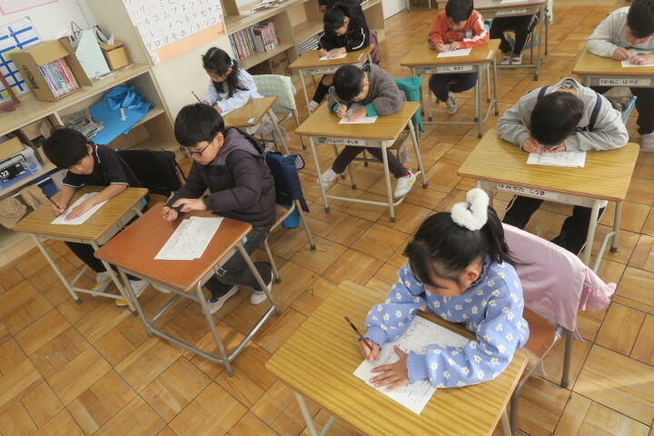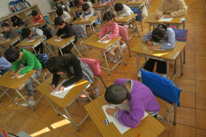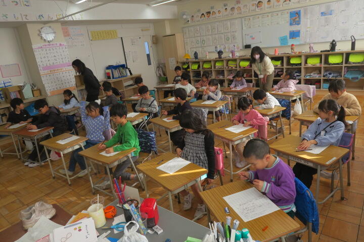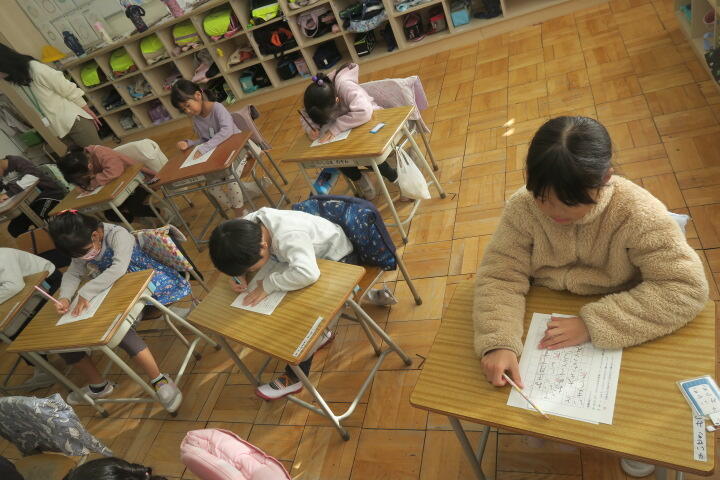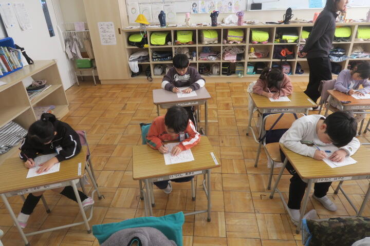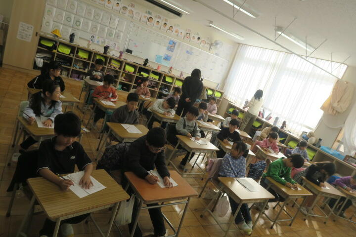 終盤でほとんどの子が書き終わり、片付けをしていました。