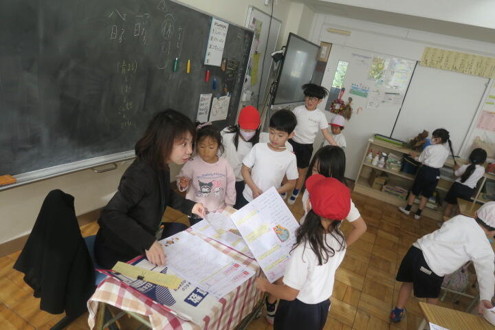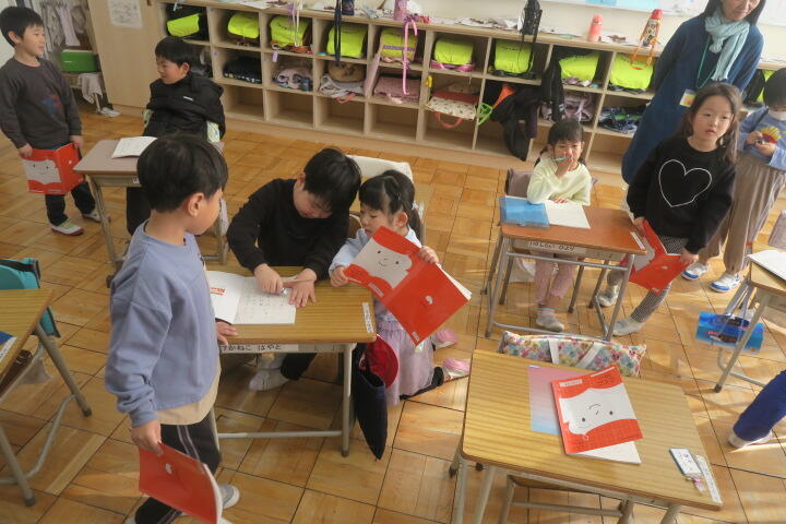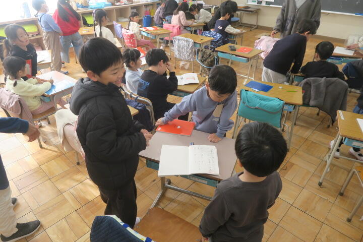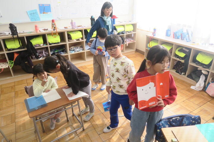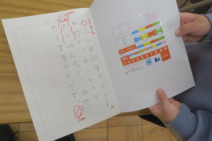 終わった子は先生に丸を付けてもらっていました。