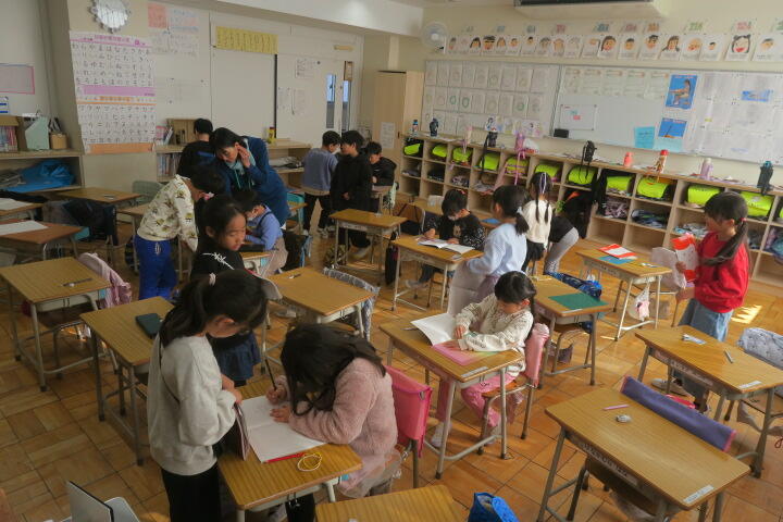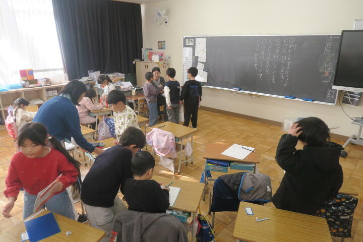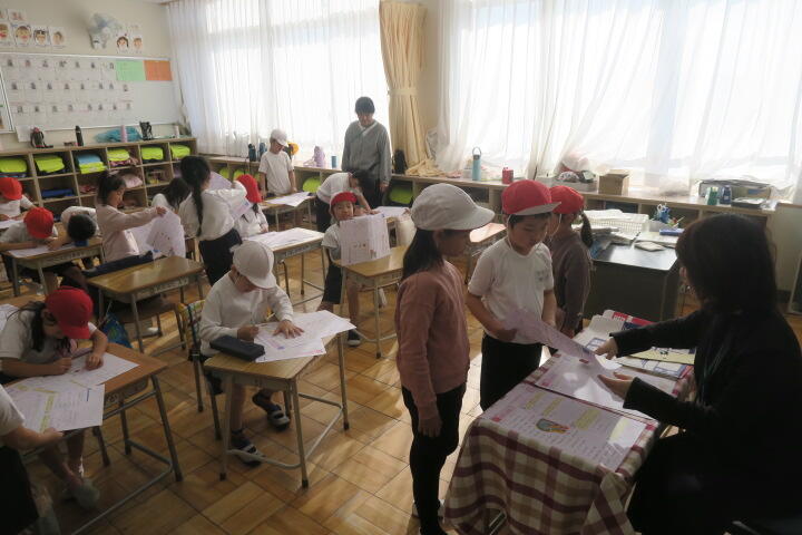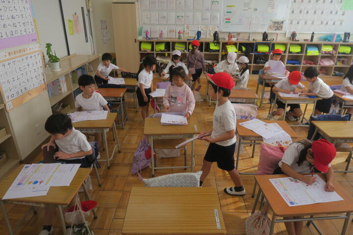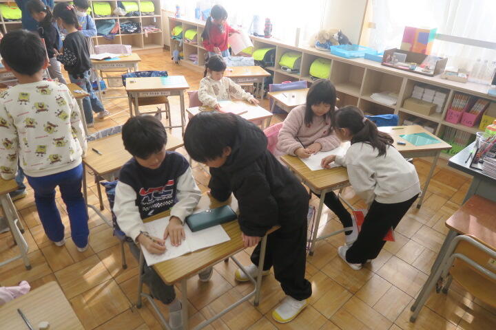 終盤でほとんどの子が書き終わり、片付けをしていました。
