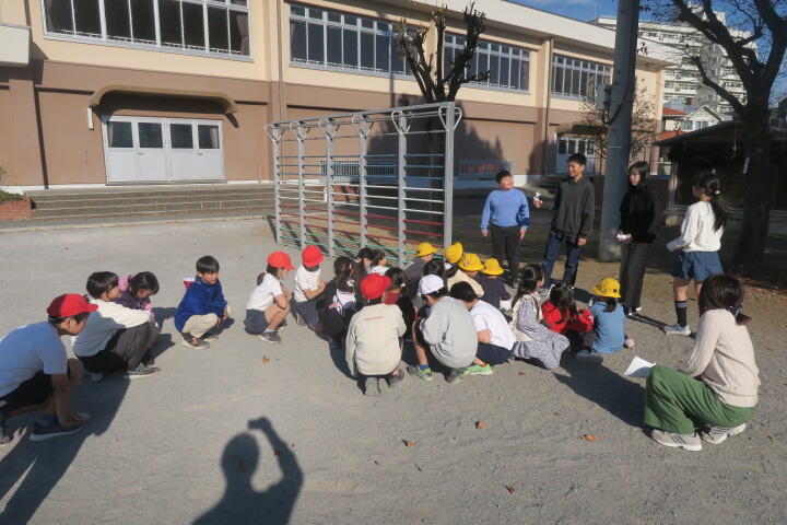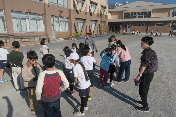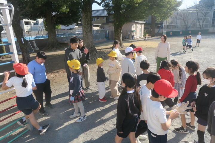 6年生が中心となり、たてわり班ごとに校庭や体育館で遊びました。