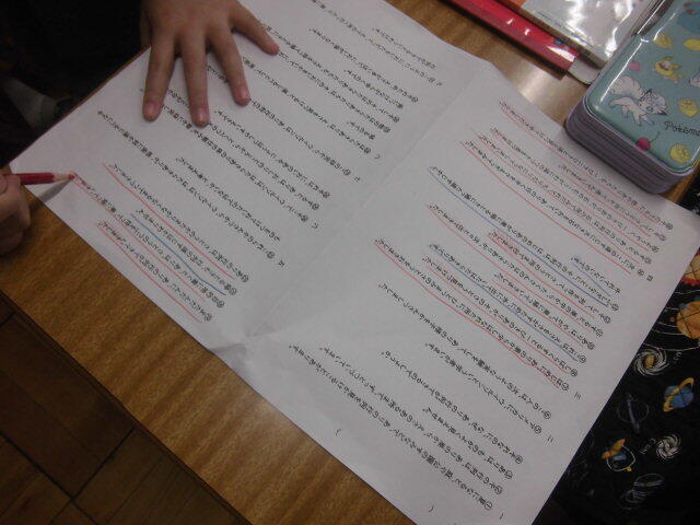 音読チャレンジで順番に丸読みをし、間違えたら座っていくという