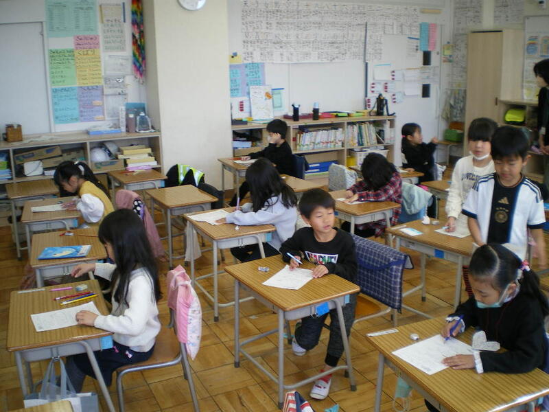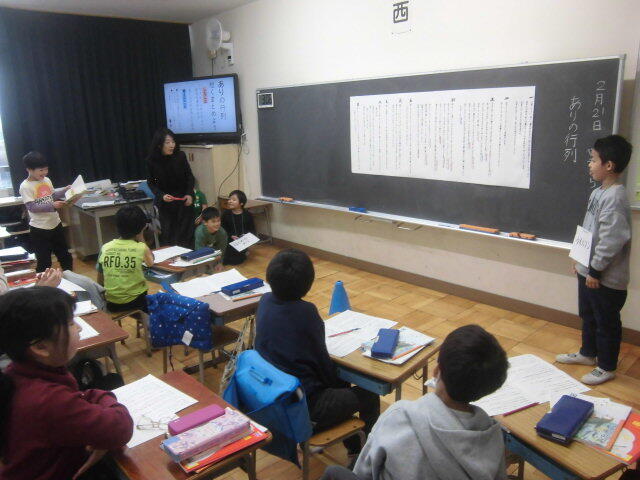2年生の道徳は授業を始める前に、算数のテストの解説を行っていました。