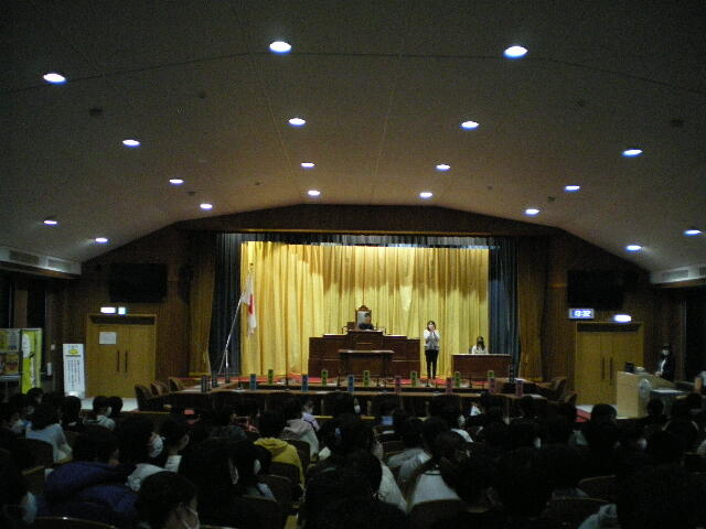 音楽集会は体育館で6年生の合奏と合唱の鑑賞です。