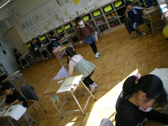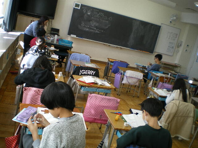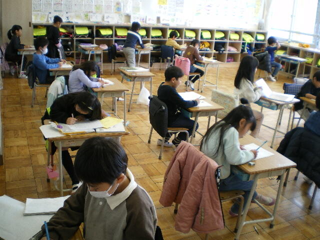 4年生は通知表を渡された後、引き続き個別学習をしていました。