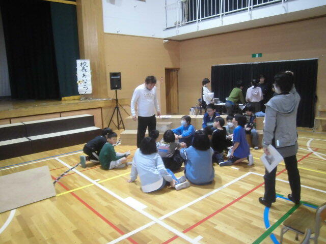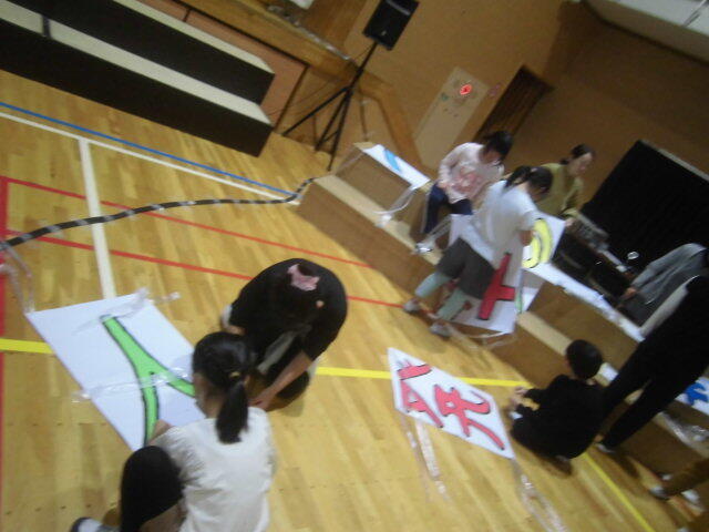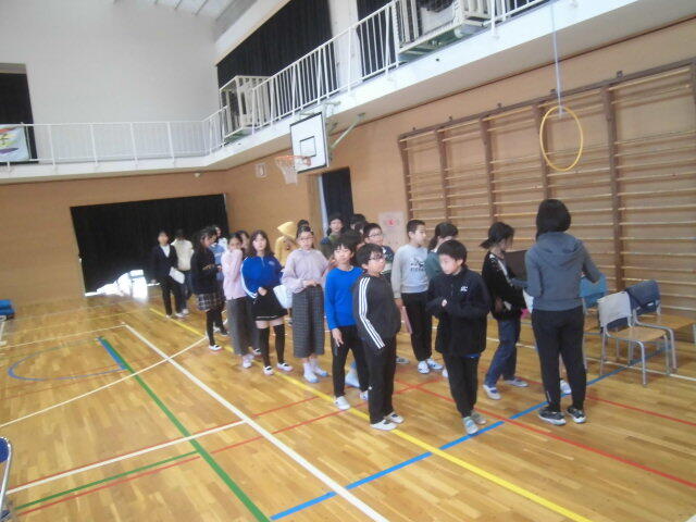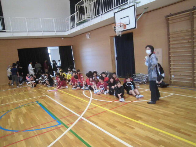 準備運動の後にグループごとにマットを運び、