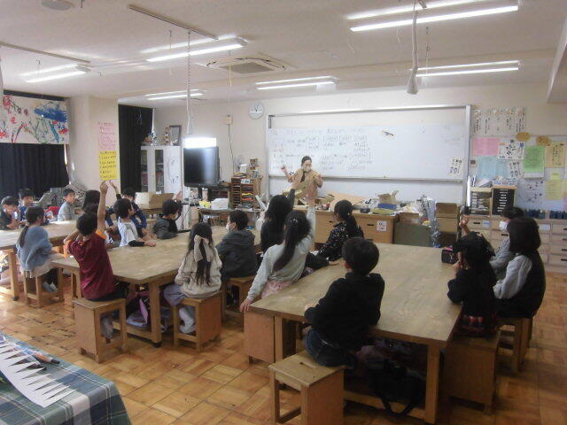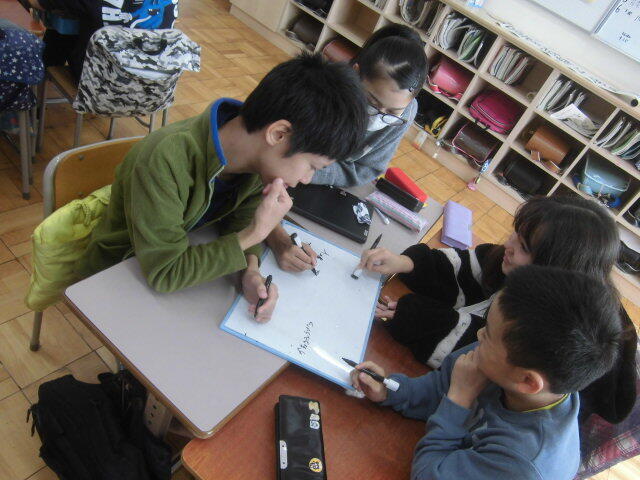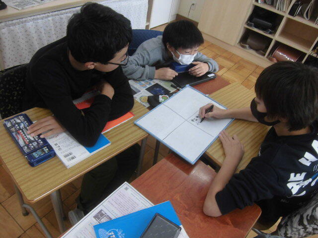 1人1人タブレットを使って、スライドにまとめる学習を行っていました。