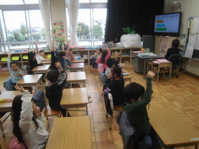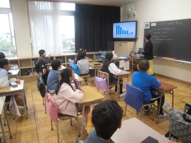 クイズ係が電子黒板を使って、クイズを出題しているところでした。