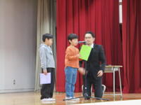 児童代表の2年生は、「ありがとう」を伝えたい人と、3学期にがんばりたいことを