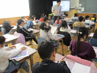 ワークシートにたくさん書いて、みんなの前で元気に発表していました。
