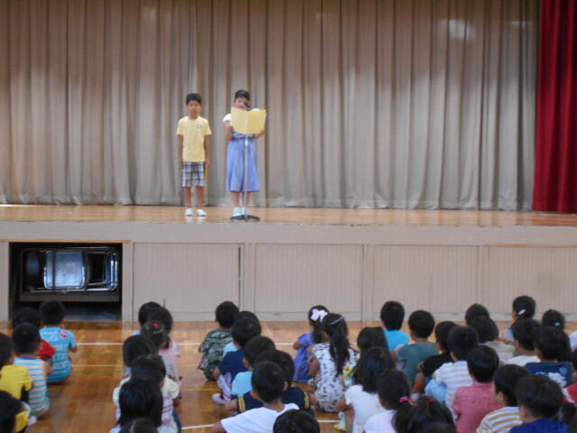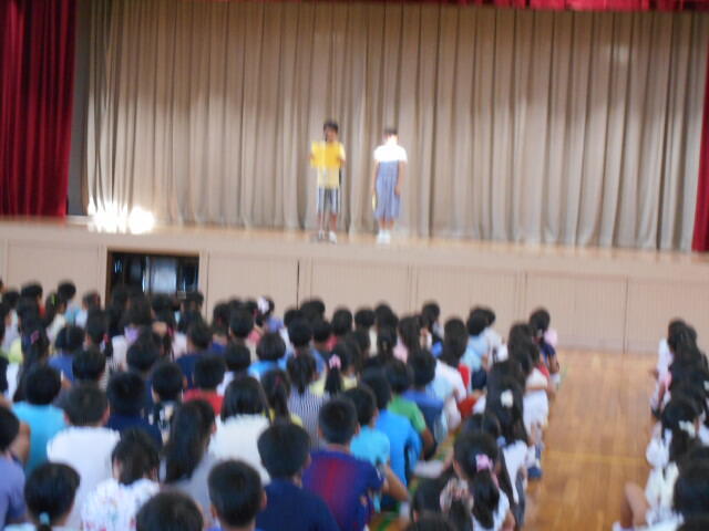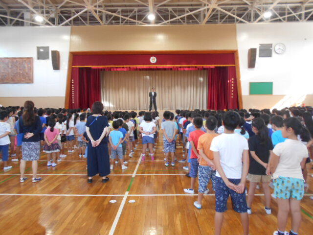 12月25日(火)2学期終業式を行いました。はじめに、校長が、2学期を振り返り、日々の授業やさまざまな学校行事を通して頑張った様子について講話を行いました。次に代表児童が2学期に頑張ったことについての作文を発表しました。