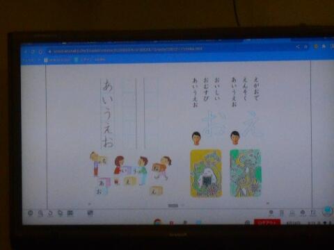 先生は、大型TVに漢字辞典を映し出し、調べ方を子どもたちに説明しています(^o^)