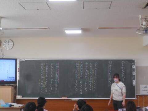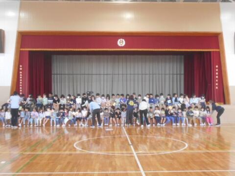 音楽の先生と一緒に、「校歌」「ひらいたひらいた」などを楽しそうに歌う子どもたち(^o^)