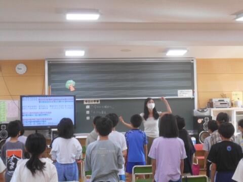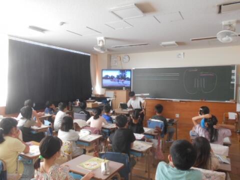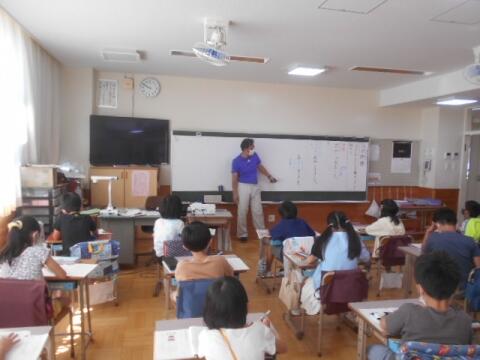 子どもたちも先生の真似をしながら楽しんで英語の学習を行っています。