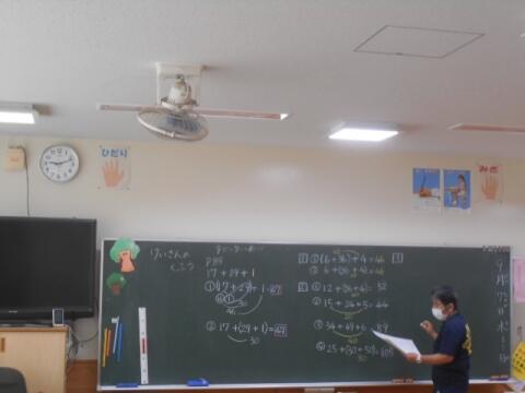 先生は大きな時計を見せながら分かりやすく子どもたちに説明します。