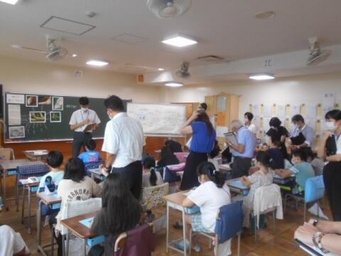 先生と子どもたちが一緒になって、思いやりのある町について考えています(^o^)