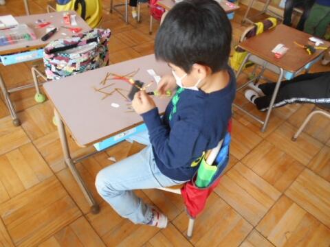 クレヨンで鯉のぼりの鱗にクレヨンで色を付けています(^o^)
