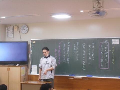 先生は、大型TVに漢字辞典を映し出し、調べ方を子どもたちに説明しています(^o^)