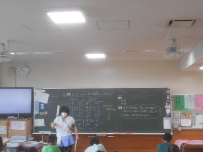 今日は、立川第六中学校の英語主任の先生と一緒に英語の授業を行う6年生。