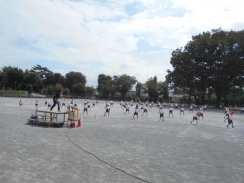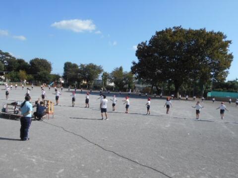 気持ちの良い天気のもと、大なわとびに全校で取り組みました。