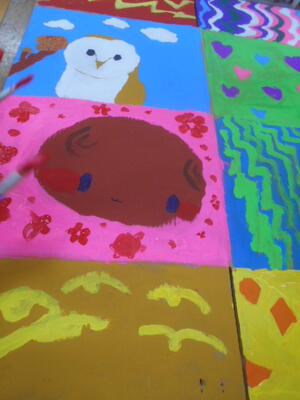 歌詞の表す様子を思い浮かべながら、「帰り道」を歌っている子どもたち。