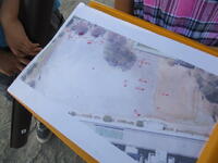 子どもたちが共同作品や家庭科の作品を会場に運び、