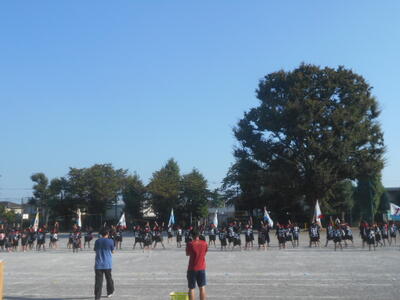 今日は素晴らしい秋晴れの校庭でティーボールを行っています。