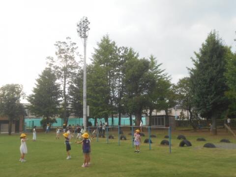 鬼ごっこやドッジボールなどをして楽しむ子どもたちと先生です(^o^)