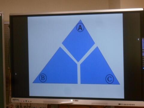 自分で考えたことをホワイトボードに書き、みんなの前で発表しています。