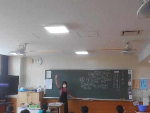 新しく習う漢字を先生と一緒に学習している子どもたち。