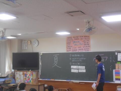 1年生は、1学期に思い出に残ったことを先生と一緒に思い出しています。