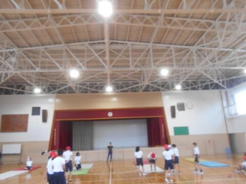 グループで協力しながら体育館で実験している子どもたちです(^o^)