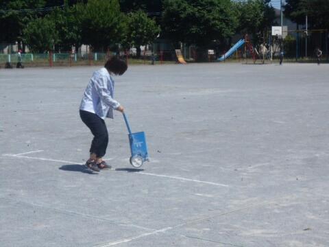 昼休み、体育の授業に向けて、ラインを引く先生方!!
