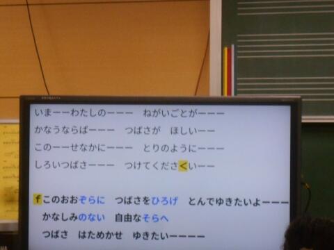 「翼をください」を、音楽の先生の伴奏で気持ちよく歌っている子どもたち。